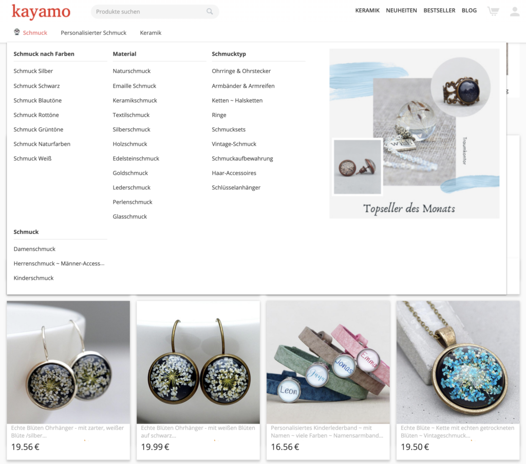 We made some keywords stronger for kayamo and helped with Google-ranking. Moreover, our marketing expert made a link on the homepage, so that Google can see that this URL is relevant. While researching for Google search optimization of the kaymao marketplace, we recommended Günter adding some titles that were missing for 5 important URLs.